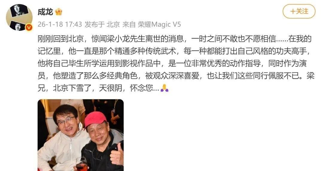 北京那场雪下得真不是时候。成龙回到城里,手机突然炸了锅,翻出来一看,是梁小龙的消息——人走了。下午四点的事,抢救了六个小时,最后还是没扛住,心脏衰竭。这消息来得太猛,他盯着窗外灰蒙蒙的天,一句话都说不上来。